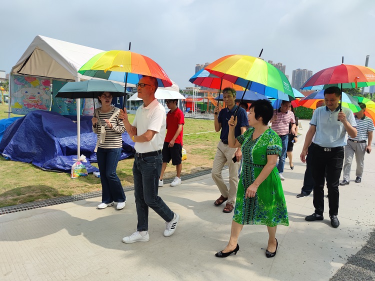 当天上午,一行人来到细滘社区后浪PLUS公园视察。据介绍,后浪PLUS是容桂第一个闲置土地成功盘活项目,通过政府引导、国资撬动、社会参与的模式,占地面积43000平方米的闲置地全面升级,成为容桂文旅新地标。