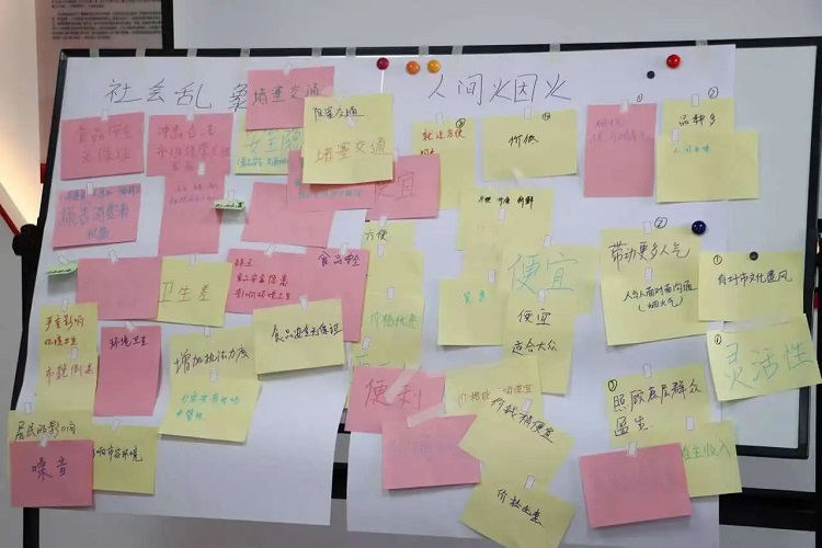 在会议中,各位代表用五彩的纸条和色笔,详细记录了“走鬼档”对居民生活的积极影响,其中包括档主以低廉的价格提供新鲜多样的商品,为居民带来购物便利,无需远赴市场即可购得所需食材;同时,“走鬼档”还促进了社区人气,成为居民间面对面交流的平台,拉近了居民间的距离,也为许多底层群众提供了生计来源。