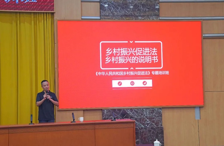 现场,何煚以《乡村振兴促进法 乡村振兴的“说明书”》为主题,结合自己多年的理论研究和工作实践,以思维导图的形式进行分析以及讲解,系统地讲述了乡村振兴战略促进法制定的起源与背景,深度阐释了这部法律出台的意义和促进乡村振兴的原则、制度、底线。他围绕乡村振兴战略中的产业、人才、文化、生态、组织等重点难点问题,就如何贯彻落实好推进五大振兴、促进城乡融合、完善扶持措施等法律要求进行了重点解读,加深了人大代表们对乡村振兴促进法的理解。