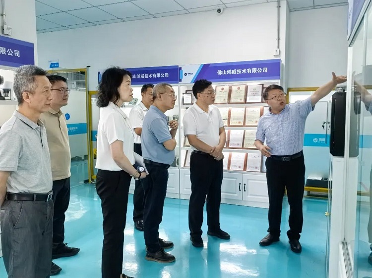 随后,调研组来到位于华南理工大学国家大学科技园顺德创新园区内的佛山鸿威技术有限公司,现场视察了该司生产基地,体验相关产品性能,走访了该司研发办公室。