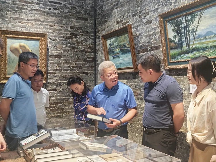 调研组首先来到高坎路名扬里,分别考察名扬里艺术馆、蚝壳屋等保留着清末时期建筑风格的古建群。名扬里现存青石板路面、镬耳屋、蚝壳墙是顺德区水乡历史和岭南独特建筑文化的见证之一。其中,名扬里艺术馆所在物业建于清代光绪年间,后于2022年修复,2023年开放,修复后建成一座包含清代建筑、清代书画、现代油画及雕塑作品的综合性艺术馆,吸引众多游客前往。