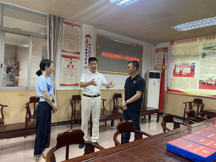 6月26日上午,顺德区人大常委会副主任徐公桥率队到均安镇星槎村人大代表联络站开展实地调研。
