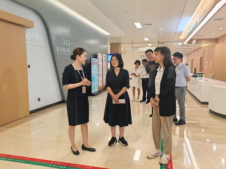 视察组先后参观了和祐医院行政办公楼、门诊住院综合楼和急救中心等。一路上,视察组与医院管理人员进行充分交流,听取该院医疗设备、医院床位、医资力量、医疗服务及运营模式等方面情况的介绍。据悉,和祐医院按照三级医院和国际质量认证体系标准打造,全面接入医保体系,一期规划住院床位936张。该院已于今年6月28日正式开业运营,开业初期设置了46个科室。