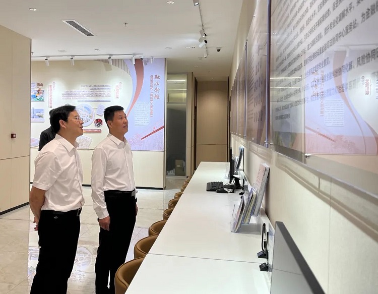 调研组首先来到新城人民法庭,视察其运作情况。新城人民法庭是顺德法院牵头设立的全省首家金融司法协同中心,全省首家金融审判专业人民法庭。新城人民法庭不断深化金融司法与金融监管、行业自治、法律服务等治理力量的衔接互动,打造“前端纠纷预防、中端多元解纷、末端高效审判”三位一体的金融协同治理体系,以精准、优质的司法服务推动金融高质量发展。